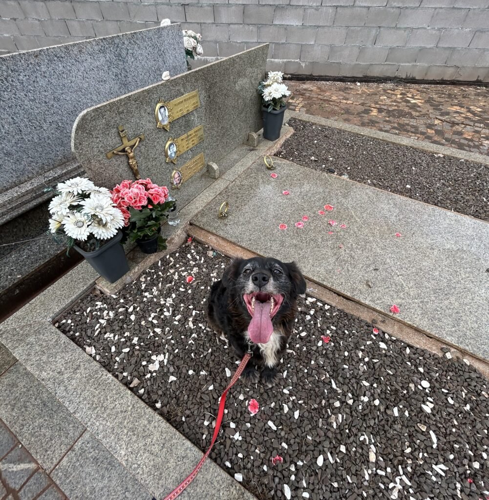 A Nina quando foi adotada. (06/2015)Voltando do veterinário. (08/2024)Visitando o túmulo do meu pai. (07/2025)