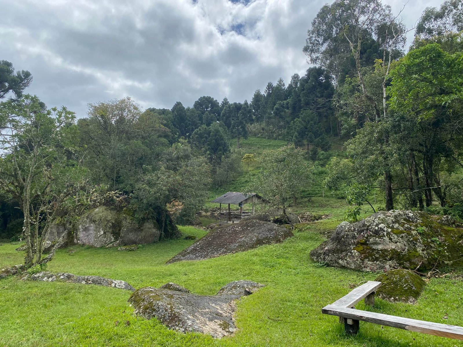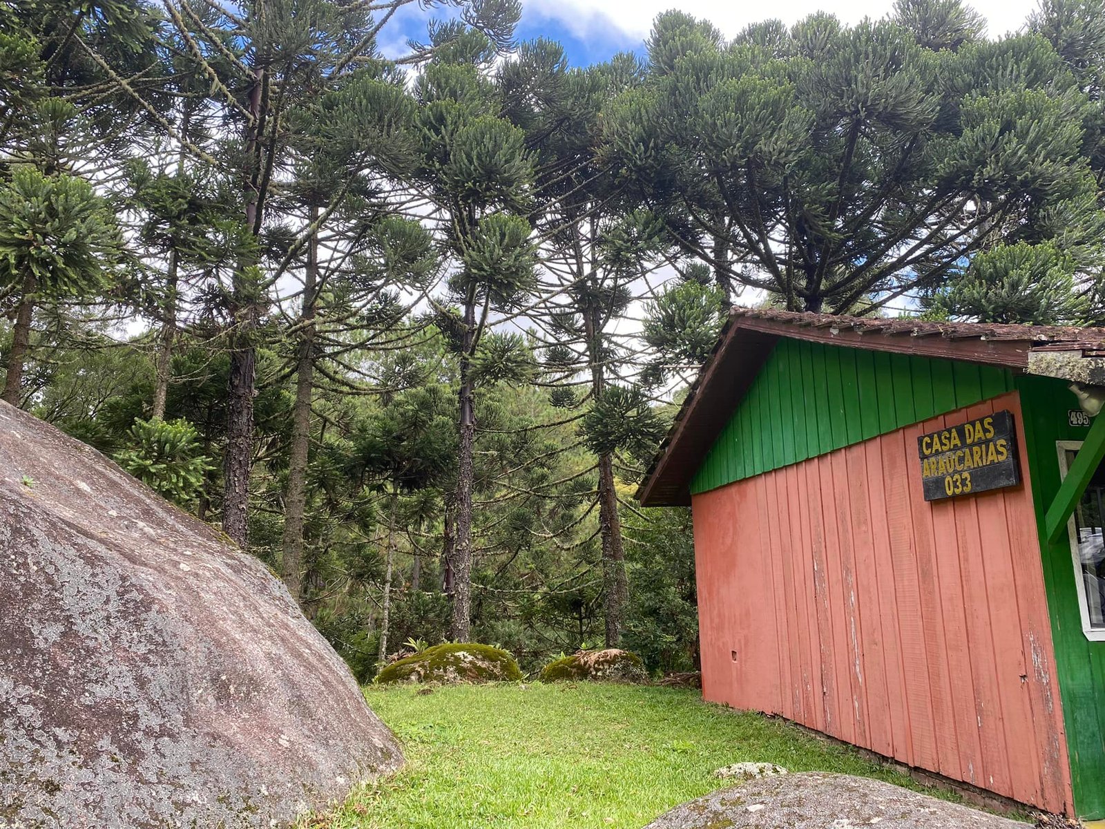 No IAP demos baixa no cadastro que tínhamos feito antes da subida e fomos informados que dois amigos nossos tinham passado ali alguns minutos antes querendo saber informações sobre nós. Eles estavam preocupados com nosso atraso. O atendente do IAP informou que eles estavam nos esperando na Fazenda Pico Paraná e fomos ao encontro deles. Vi o Roberto sentado em uma pedra e quando ele me viu veio todo alegre me dar um abraço. O André logo apareceu e contou que falaram com o casal que nos ajudou no Getúlio, que contou que nos viu e que estávamos descendo lentamente. O André estava de carro e não recusamos a carona até a Fazendo Rio das Pedras, que não ficava longe dali.