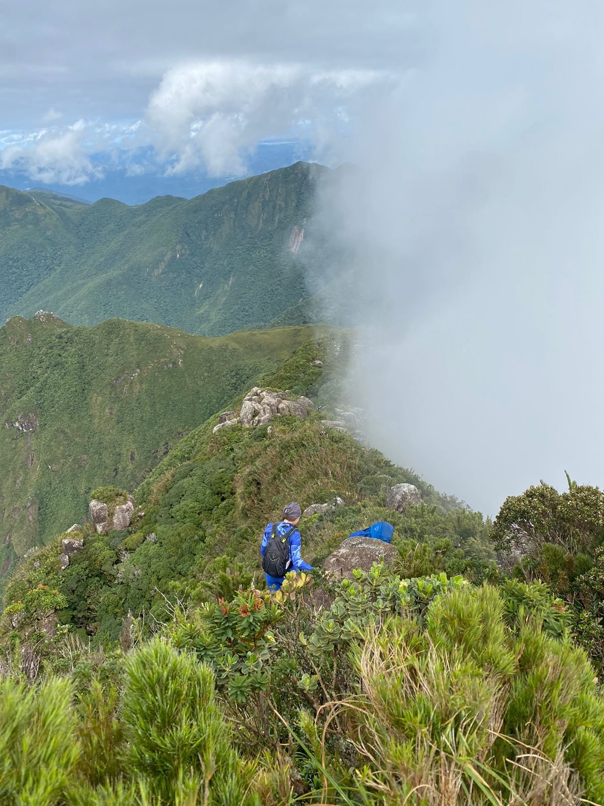 Saímos do A2 e continuamos descendo, tomando cuidado com a trilha que continuava molhada e lisa em muitas partes. Mesmo tendo feito algumas horas de sol durante o dia, o barro era tanto nas trilhas que não secou com o sol. Pelo caminho fomos encontrando bastante gente que subia com mochilas cargueiras nas costas. Esse pessoal planejava acampar no A2 ou no cume do PP. Quando vinha alguém subindo, sempre dávamos passagem e dessa forma aproveitávamos para descansar rapidamente enquanto ficávamos parados ao lado da trilha esperando o pessoal passar.