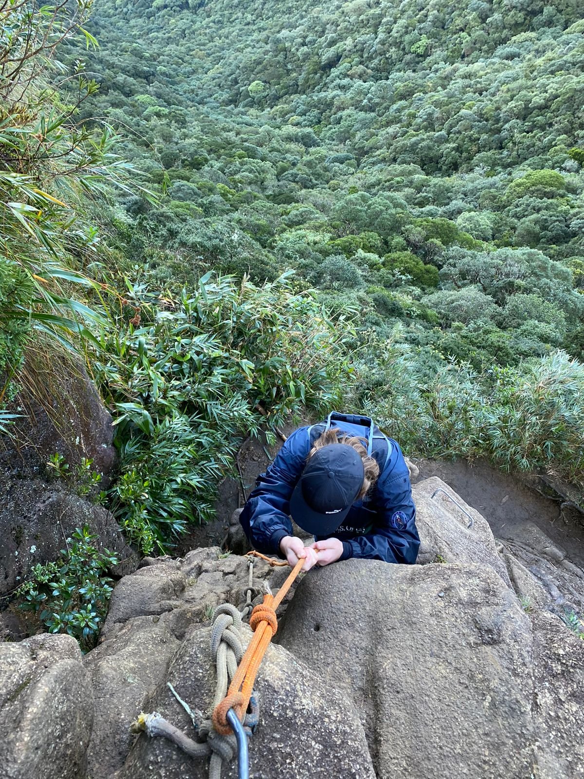 Que aventura! Mesmo já estando ali pertinho do céu percebi o quanto quero viver, conversando com a Terra, com as pedras, “belas ancestrais me ajudem a subir mais um pouquinho”. Teve tremedeira e choro, medos que eu nem sabia que eu tinha e mais uma vez o universo deu um jeitinho de fazer passar as pessoas certas para me auxiliar e me dar coragem para mais um trecho. Realmente percebi o quanto quero viver.