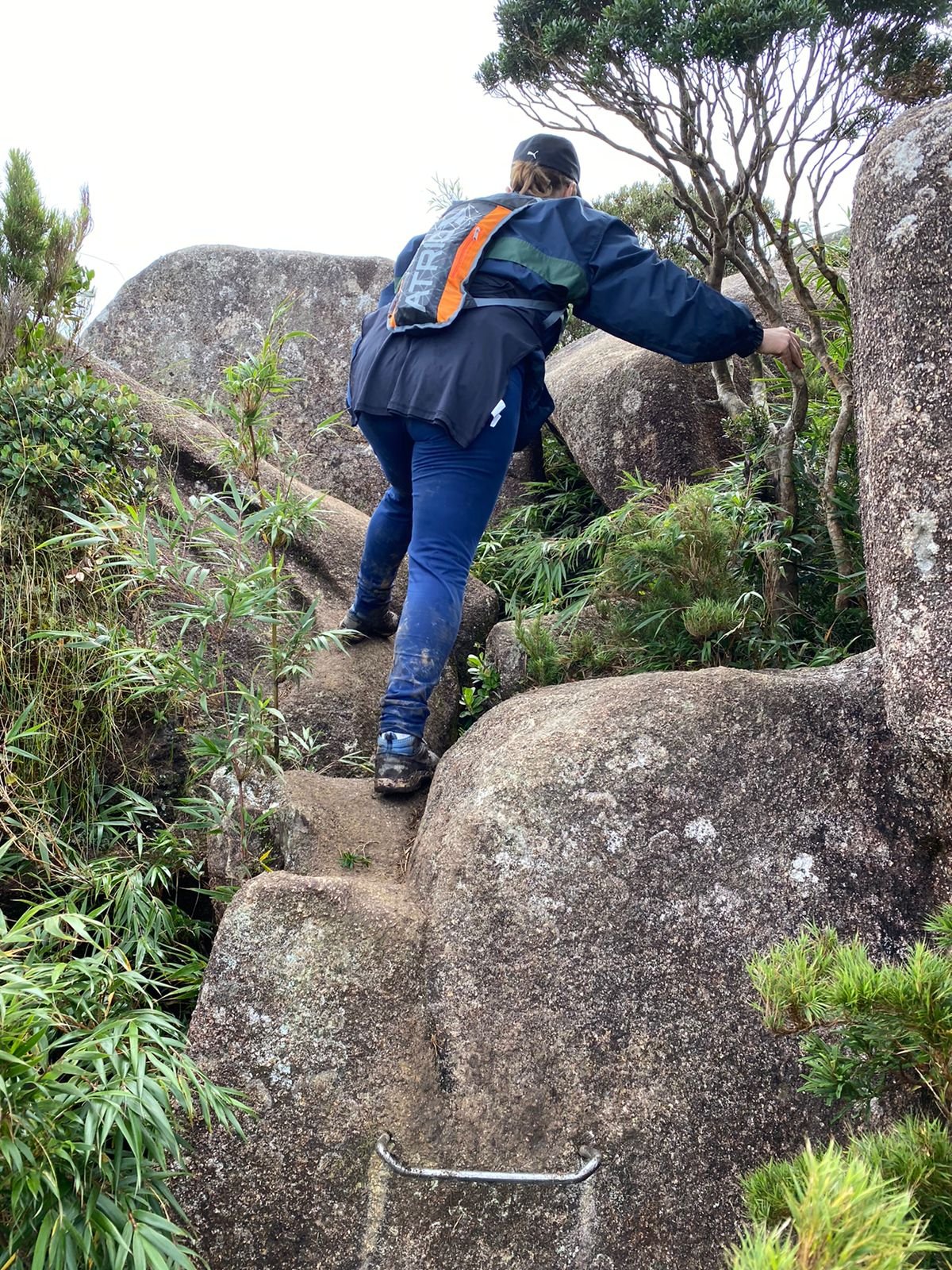 Estou extremamente feliz em ver o quanto as pessoas se unem, se ajudam, são solidárias nessas situações. Não apenas do meu grupo, mas todos que foram fazer a trilha, e posso citar muitos exemplos, desde um “bom dia” para todos que passavam, “vocês estão quase chegando”, “fiquem no A2 porque o pico está lotado”, “eu tenho curativo”, “alguém quer água?”, “tem “banheiro” ali”, até uma mão e um apoio para conseguir subir.